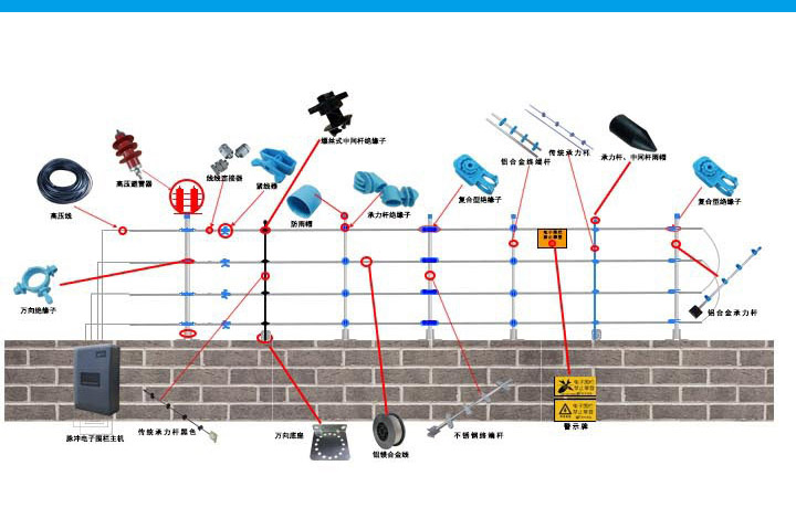 說完瞭(le)主機那麽我們來聊一聊電(diàn)子圍欄前端,也就是我們所說的電(diàn)子圍欄配件,(如下圖): 如何選擇電(diàn)子圍欄及配件